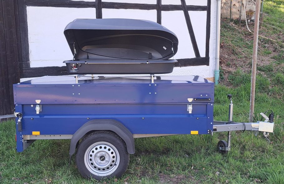750 kg Anhänger mit Deckel ungebremst, abschließbar mit Dachbox